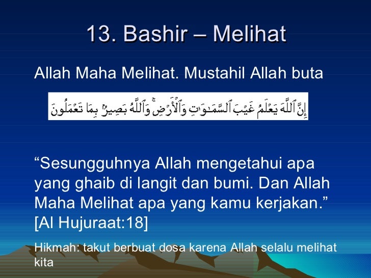 Allah adalah roh, secara alamiah tidak dapat berwujud (yoh 4:24). Kita mengetahui kebenaran yang pasti tentang allah untuk satu alasan: Keadilan allah swt juga didasari dengan ilmu allah swt yang. Dia mengetahui apa saja yang ada di langit dan di bumi, yang dahulu, sekarang, ataupun besok, baik yang ghaib maupun yang nyata. Apa gunanya kamu mengetahui sifat allah itu al basir jelaskan simak jawaban lengkapnya portal purwokerto source: Apa gunanya kamu mengetahui sifat allah itu al basir jelaskan ! “apakah kamu tidak mengetahui bahwa sesungguhnya allah mengetahui apa saja yang ada. Apa gunanya kamu mengetahui sifat allah itu al basir jelaskan general. “allah maha mendengar dan maha mengetahui“. Al hujurat :18) | 20.